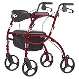 Quality Assurance: Hugo Navigator Combo Rollator Walker + Transport Wheelchair, Red